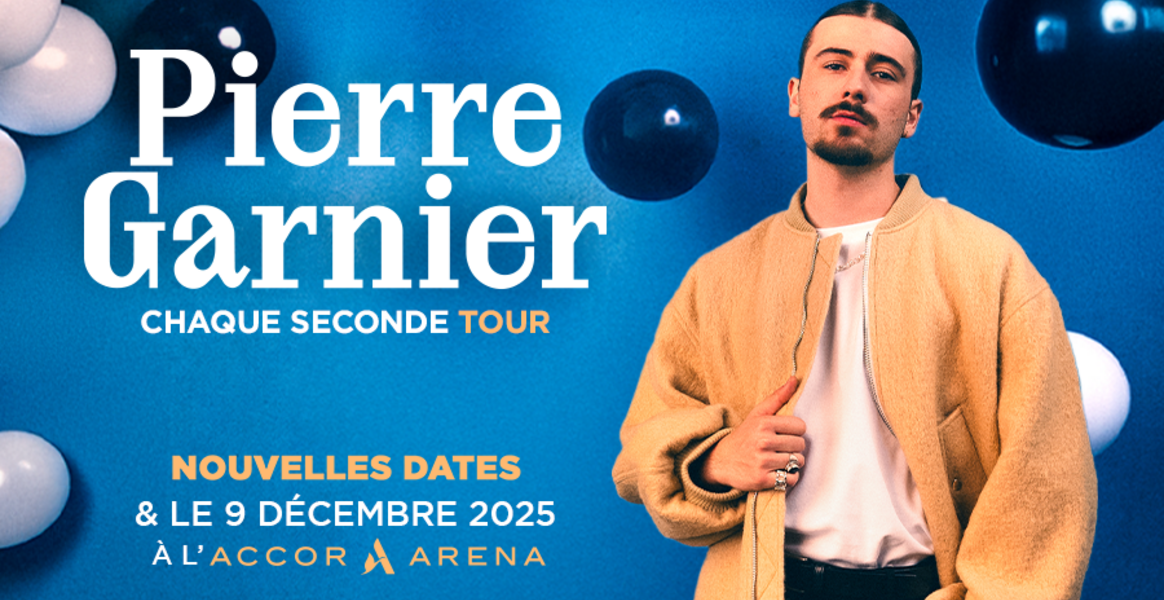 Pierre Garnier ajoute 5 nouvelles dates à sa tournée des Zénith qui débutera en mars 2025 ! INCROYABLE, si vous n'aviez pas eu vos places la première fois, c'est le moment de vous rattraper. Sa tournée Chaque Seconde Tour passera en Suisse et dans toute la France et même dans la mythique salle de l'Accor Arena le 9 décembre 2025.